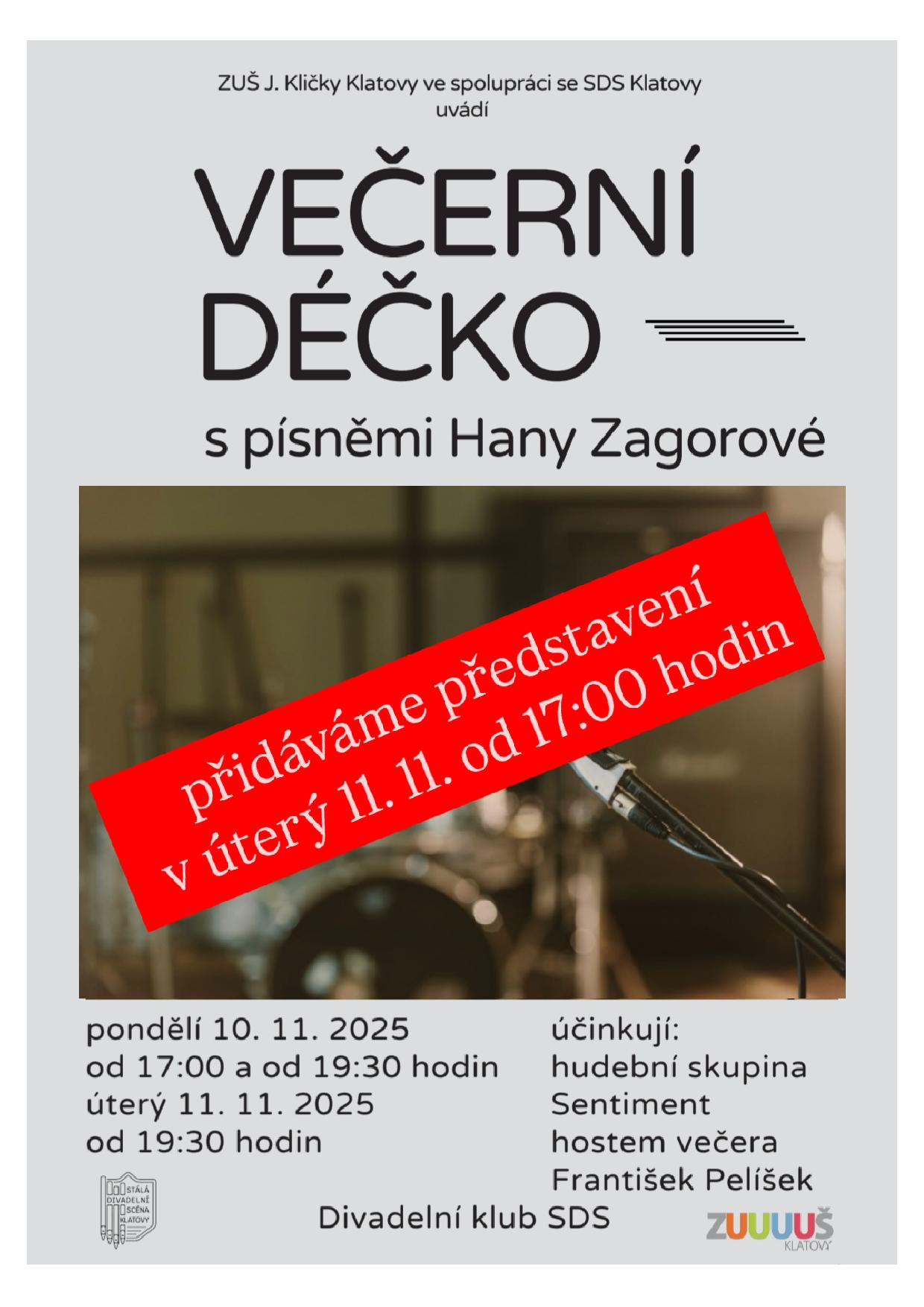 | 11.11.25 , 17:00 | Divadlo Klatovy - divadelní klub | |