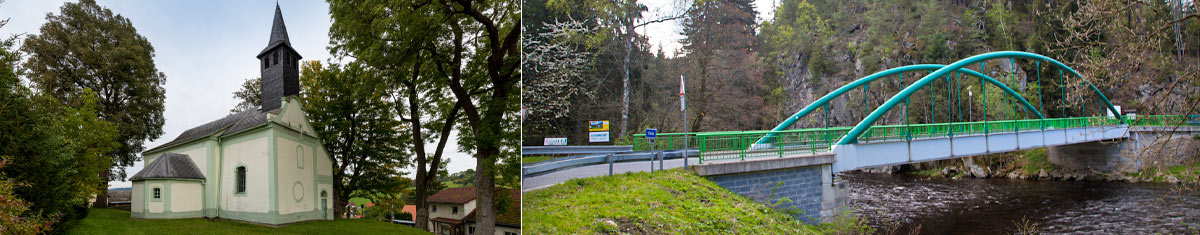 Původně sklářská osada při řece Otavě s doposud fungující sklárnou.