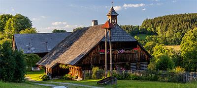 Stavení nedaleko Hlavňovic je jedinečným dokladem tradiční šumavské architektury. Chráněná památka UNESCO.