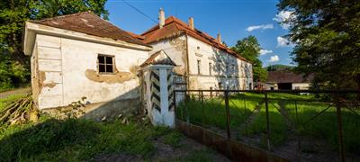 Barokní zámek s hospodářským dvorem vznikl přestavbou původní tvrze z 16. století