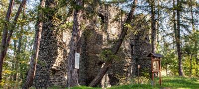 Romantická zřícenina kostela z roku 1370 na vrchu nad obcemi Běšiny a Tržek