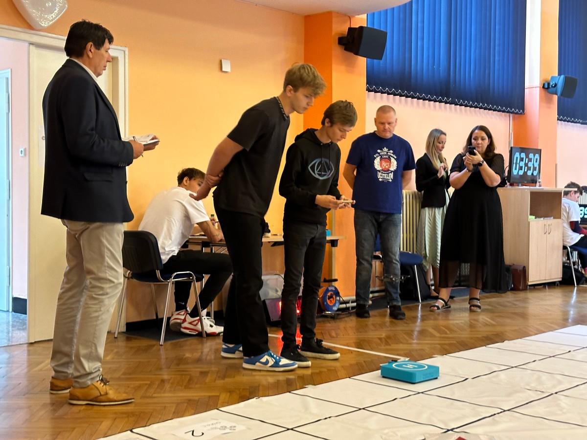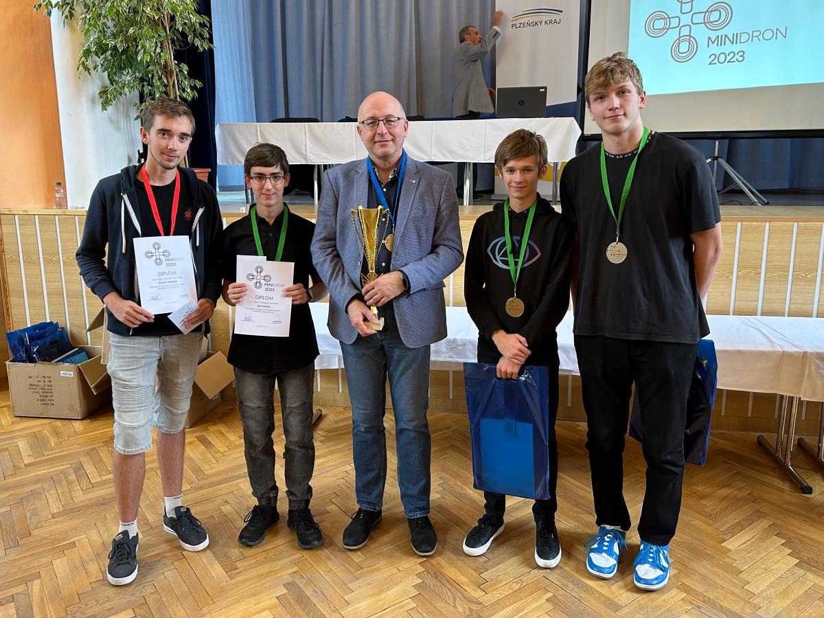 Dron ovládaný Janem Kalistou a Adamem Doležalem v kategorii gymnázií s přehledem zvítězil.