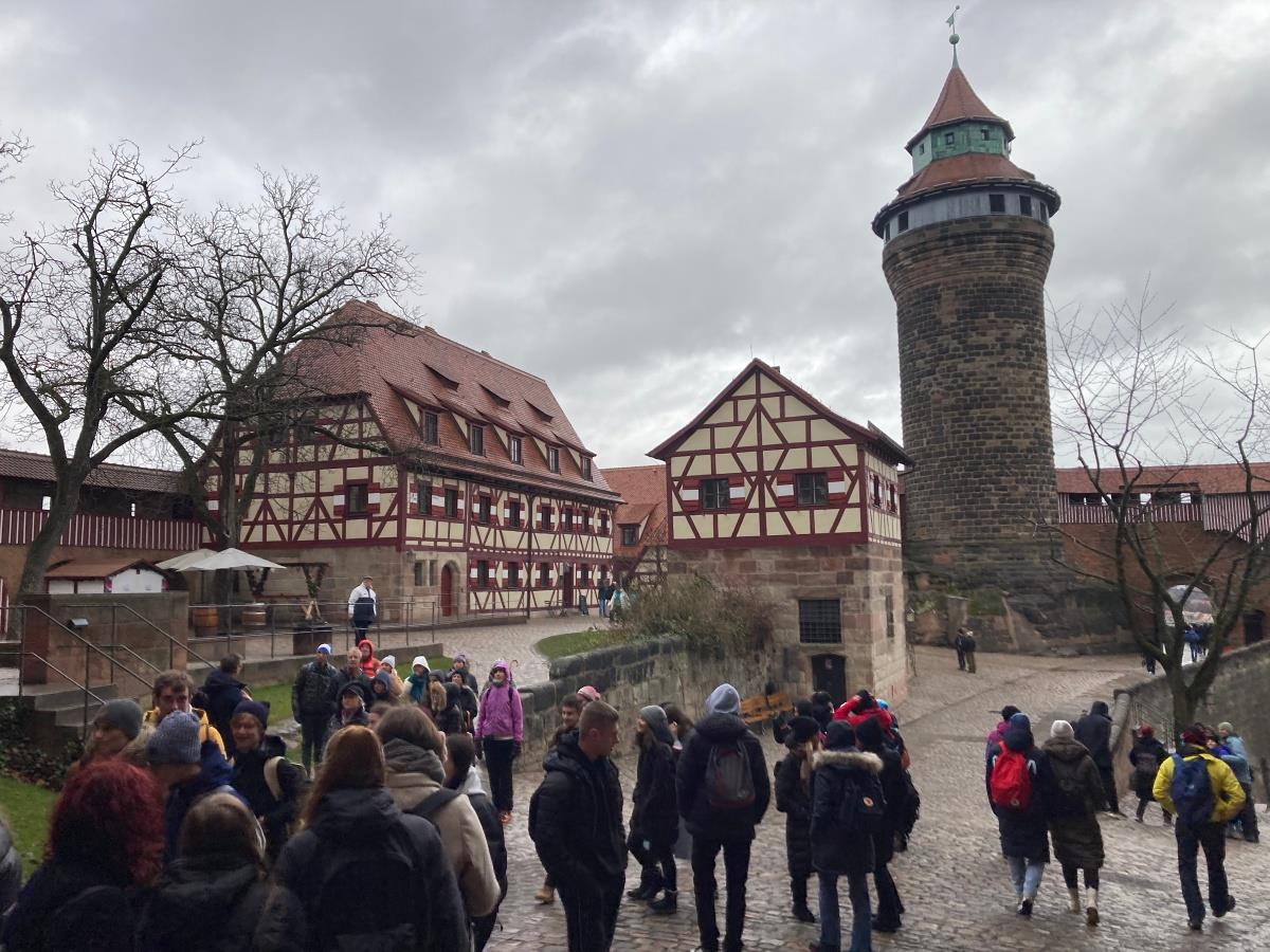 Poslední školní den kalendářního roku 2023 proběhl výjezd za vánoční atmosférou do hlavního města předvánočních trhů Norimberku, kterého se zúčastnilo přes padesát žáků. Kromě nasávání pohody nechyběl akci ani rozměr vzdělávací, protože prvním bodem programu byla návštěva justičního paláce, který slouží jako památník norimberských procesů. Expozice je velmi vyvedená a zdařile propojuje minulost s aktuálními válečnými konflikty všude na světě.