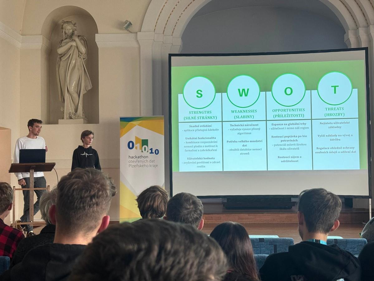 V rámci této soutěže vytvořili mladí programátoři aplikaci PlantGuard. Tato AI aplikace uživatelům pomůže s rozpoznáváním nemocí rostlin: stačí jen vyfotit rostlinku a aplikace zjistí diagnózu a díky napojení na open data doporučí léčbu. Nabízí také přesnou předpověď počasí, mapu výskytu nemocí a dokonce i grafy o vývoji BIO trhu a zahrádkářství v ČR.