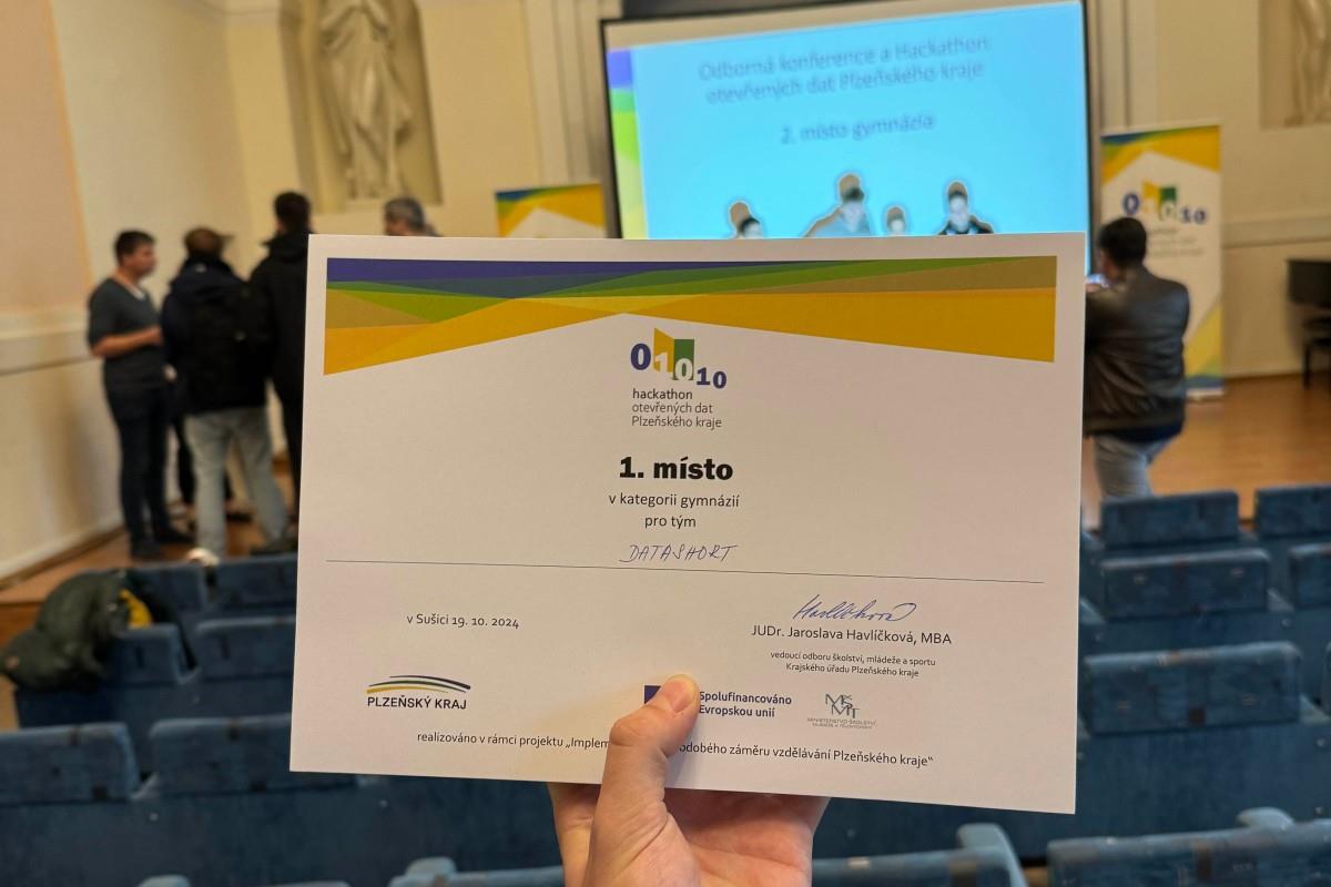 I letos se porotě projekt studentů z oktávy A líbil a tak tým DataShort získal první místo – už potřetí v řadě. Tým také postupuje do celostátního kola Hackujstat, který se bude konat v březnu příští rok.
