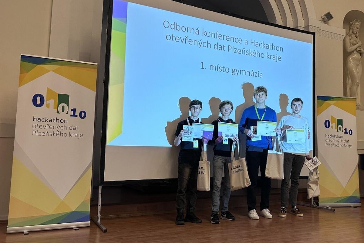 Po roce se gymnaziální tým DataShort – Adam Doležal, Jan Kalista, Jan Nováček, Vojtěch Trnka – opět zúčastnil Hackathonu Plzeňského kraje konaného 18. – 19. 10. 2024.
