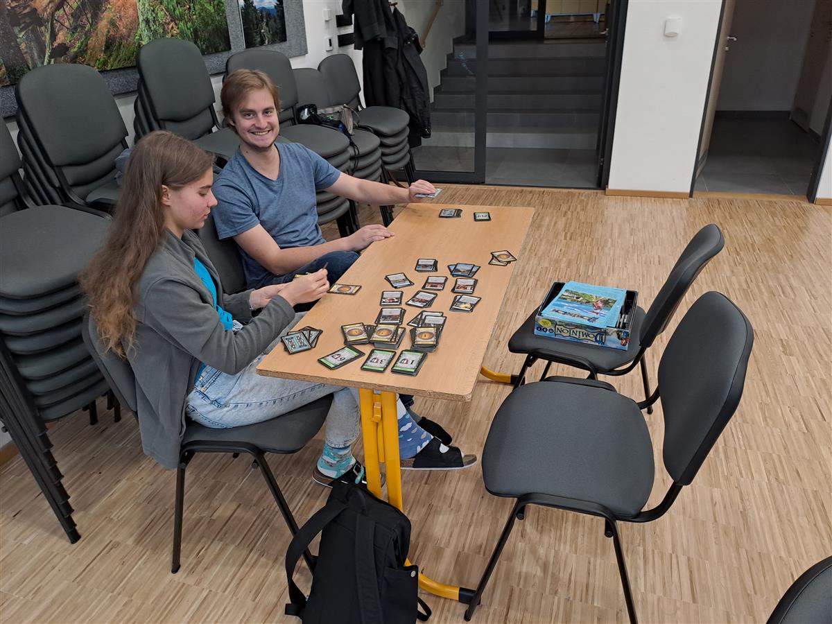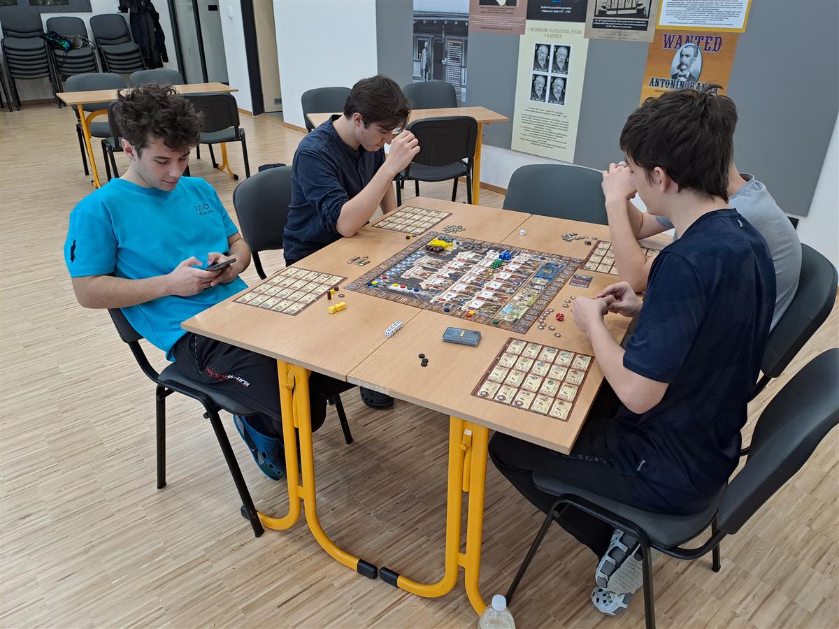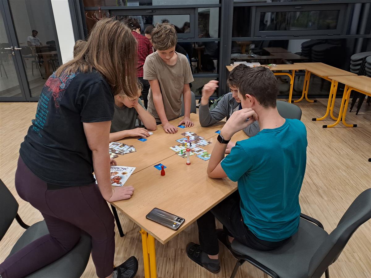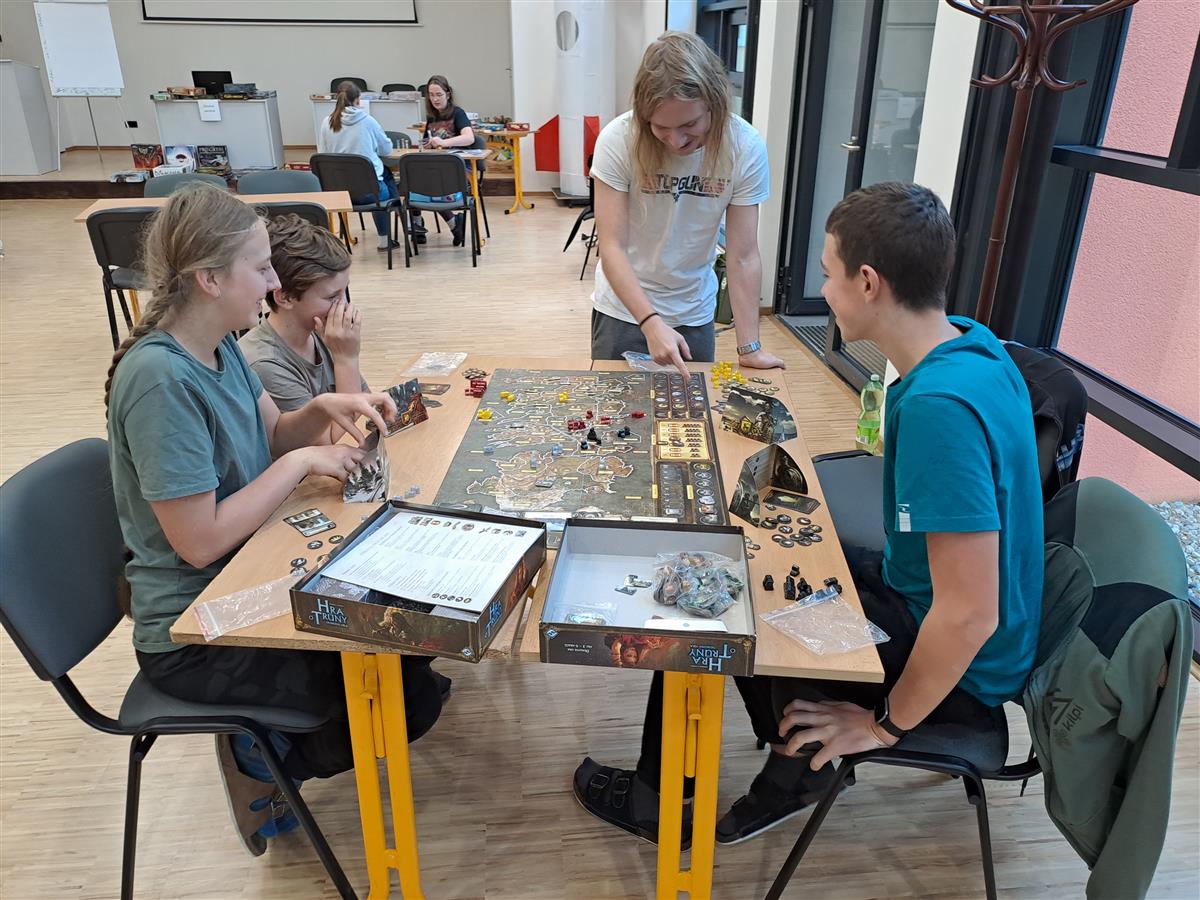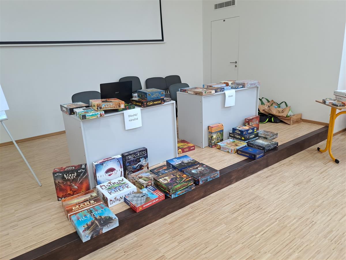 V sobotu 9. 11. se v aule našeho gymnázia uskutečnil první Deskoday – akce pro všechny milovníky moderních společenských her, ať už deskových či karetních. V nabídce bylo několik desítek titulů od jednoduchých karetních „fillerů“ (tedy rychlých her na pár minut) až po velké krabice napěchované herním materiálem, jejichž odehrání zabere i několik hodin. Někteří nadšenci přinesli i hry vlastní, takže o pestrý výběr skutečně nebyla nouze. Na stůl se postupně dostalo rozmanité spektrum titulů, a to jak kooperativních, tak ryze kompetitivních, při kterých vzniká ta pravá hráčská řevnivost.