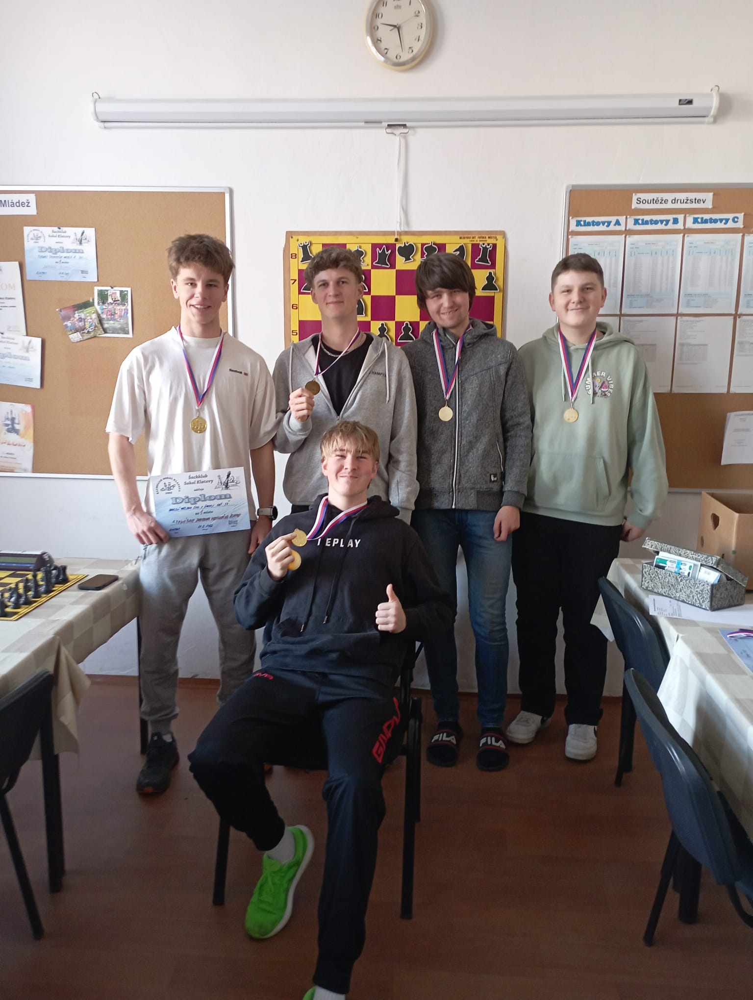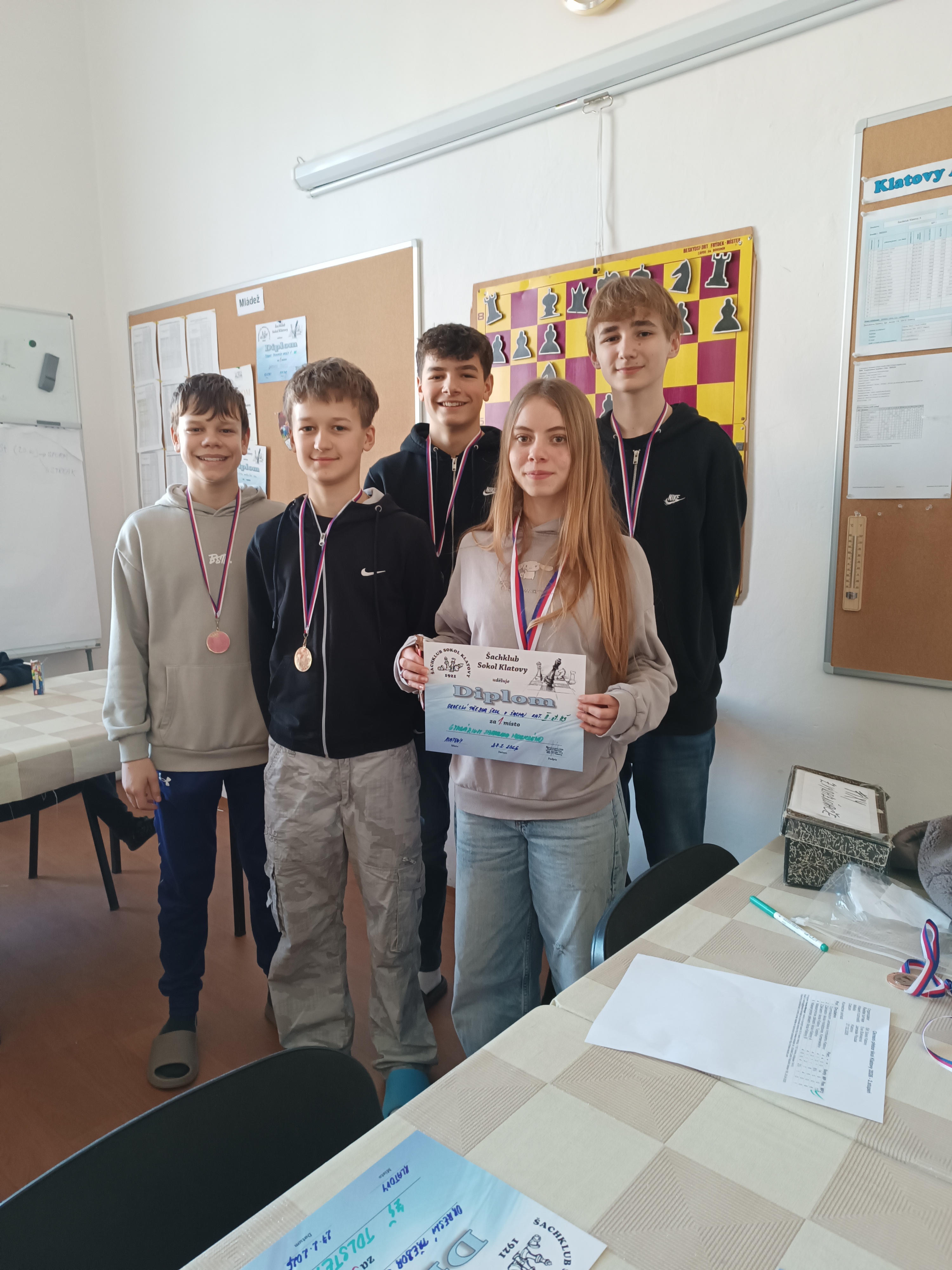 V pátek 27. 2. 2026 proběhlo v klatovské sokolovně okresní kolo přeboru škol v šachu. Naše gymnázium v kategorii 2. stupně ZŠ a příslušných ročníků víceletých gymnázií reprezentovali: