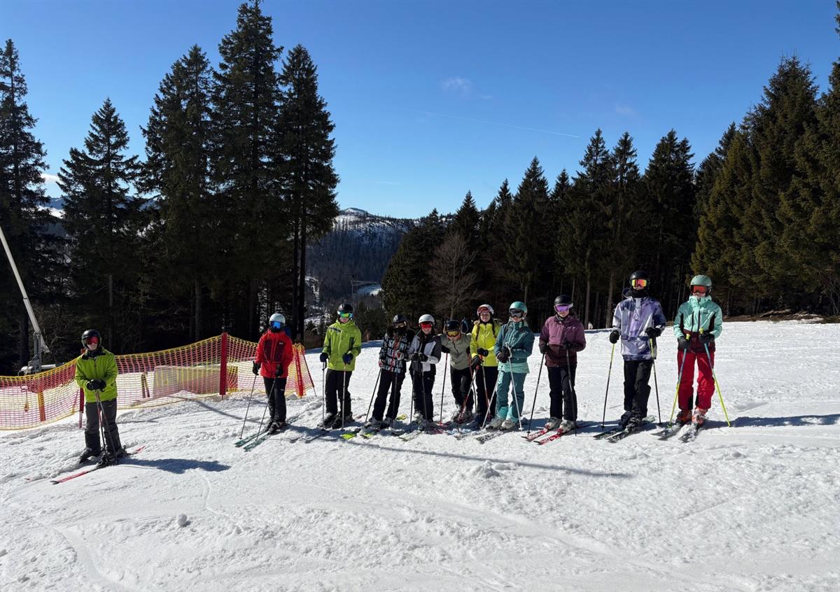 23. února se třídy Q-A a Q-B vypravily na lyžařský kurz na šumavském Špičáku, přičemž zejména kvinta A jela téměř v kompletním složení. V pondělí žáky uvítalo počasí více než nevlídné – teploty několik stupňů nad nulou a zejména vydatný liják. Ten naštěstí v průběhu odpoledne ustal a naopak zůstal krásně vodivý sníh naprosto ideální pro výuku. Déšť již další dny nekomplikoval a počasí bylo nádherně jarní. Dopoledne byla jako stvořená pro nácvik carvingových oblouků, naopak odpoledne patřila jízdě v boulích, které vznikaly v důsledku vysokých teplot. Středeční odpoledne patřilo tradičně výletu do centra Železné Rudy a večer pak večernímu lyžování, kterého se zúčastnila více než polovina žáků kurzu. Páteční ráno si navíc drtivá většina účastníků kurzu zpestřila výletem za východem slunce na horu Pancíř.