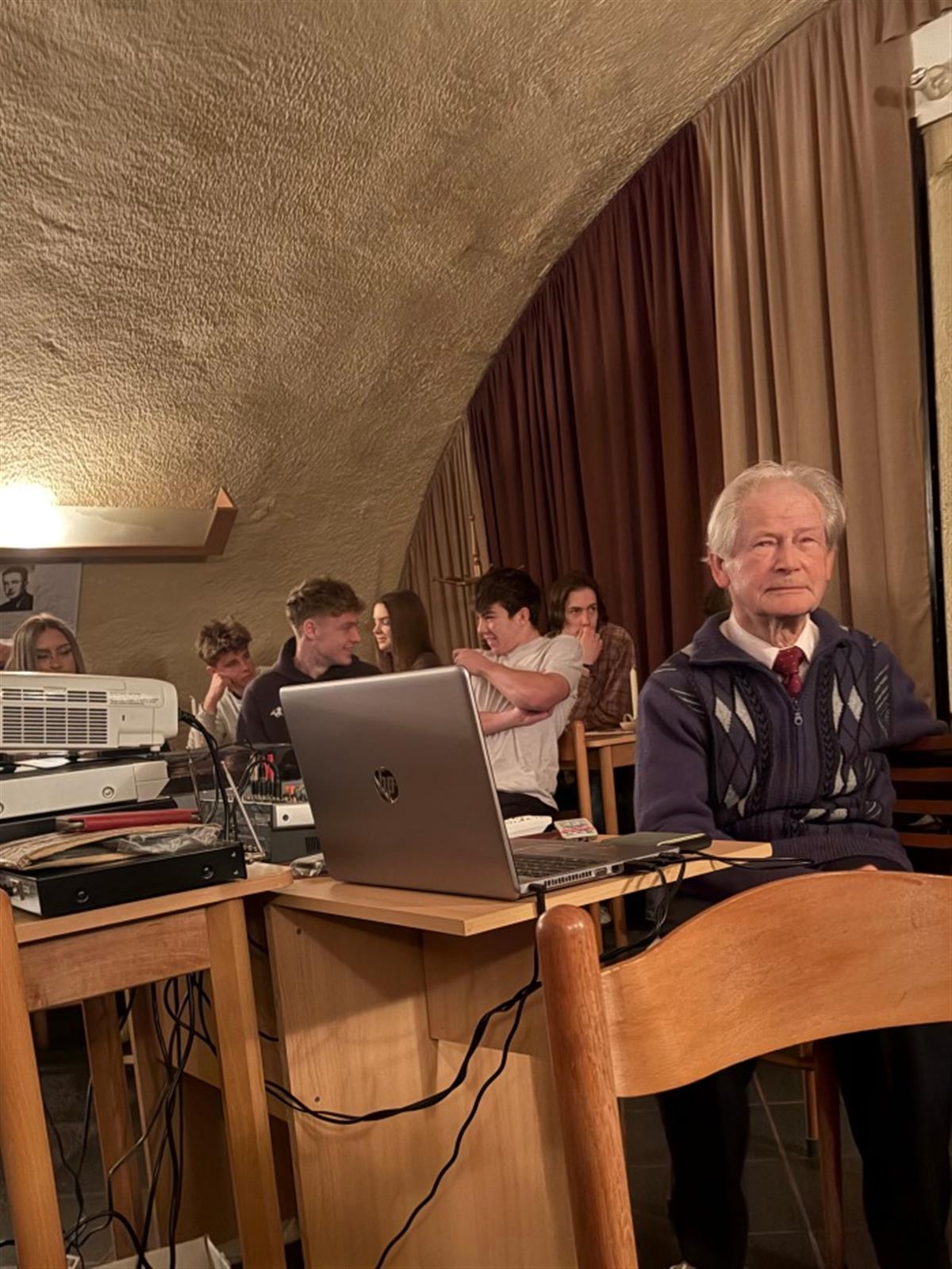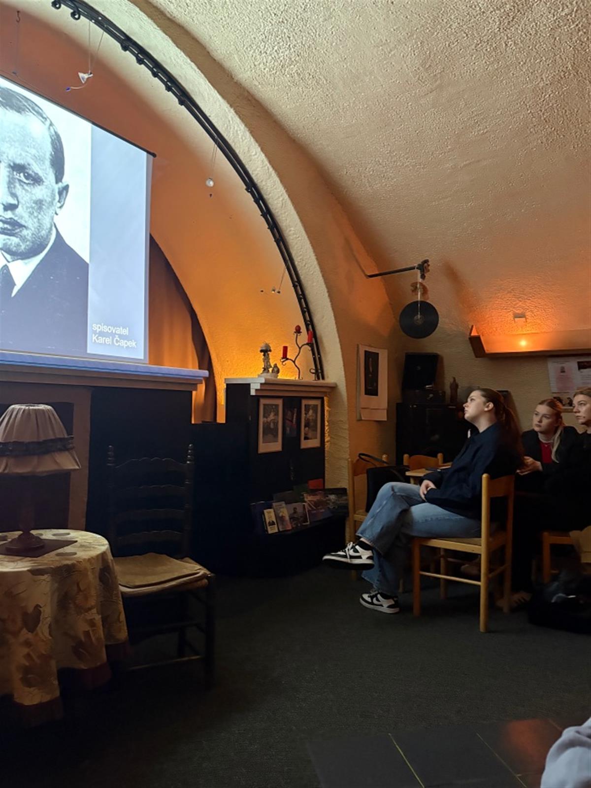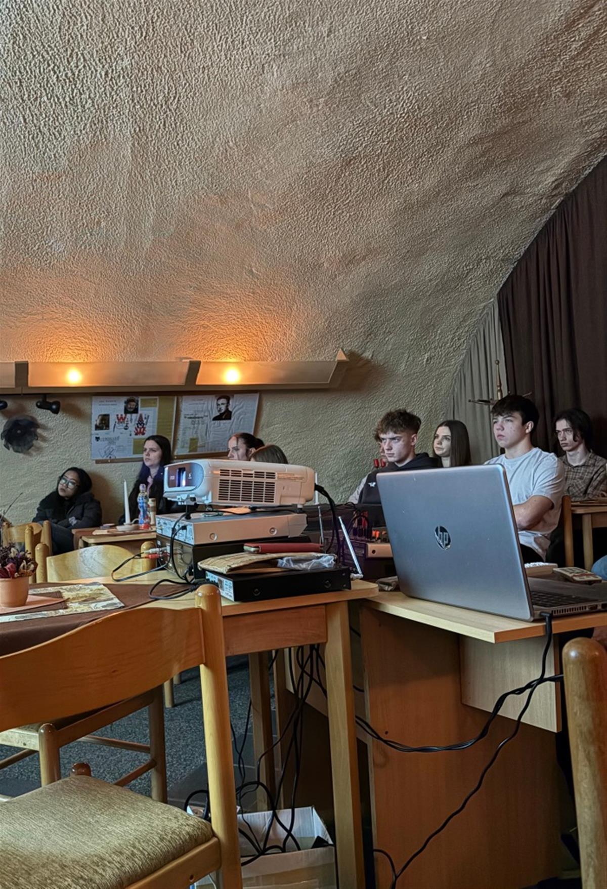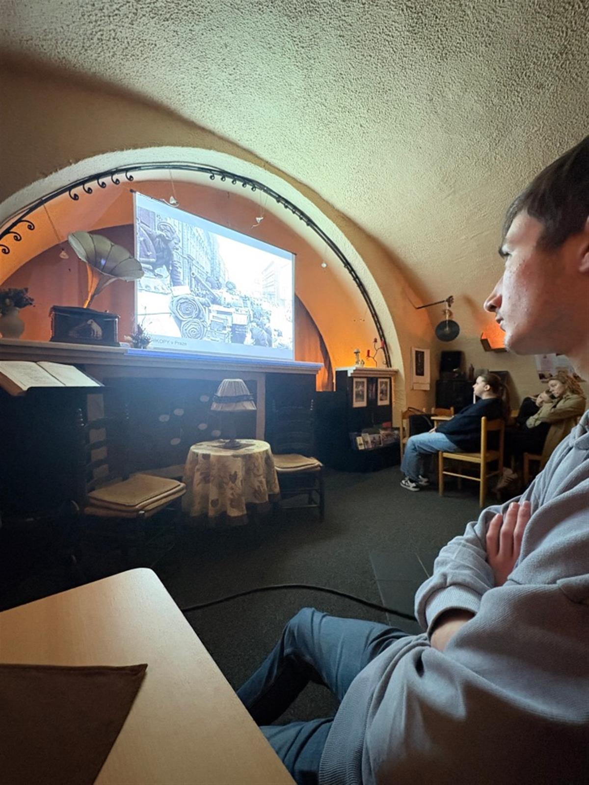 Ve středu 11. 3. 2026 se studenti třetího ročníku navštěvující dějepisný seminář namísto klasické výuky vypravili do klatovského Hifiklubu na přednášku s názvem Rok 1968. Součástí komponovaného pořadu bylo ale mnohem více než zmiňovaný klíčový rok našich moderních dějin. Vzpomínky našich hostitelů a autorů pořadu manželů Kosových doprovázené bohatým obrazovým materiálem začínaly již na konci druhé světové války a přinesly osobitý pohled na pohnutou dobu poloviny minulého století.