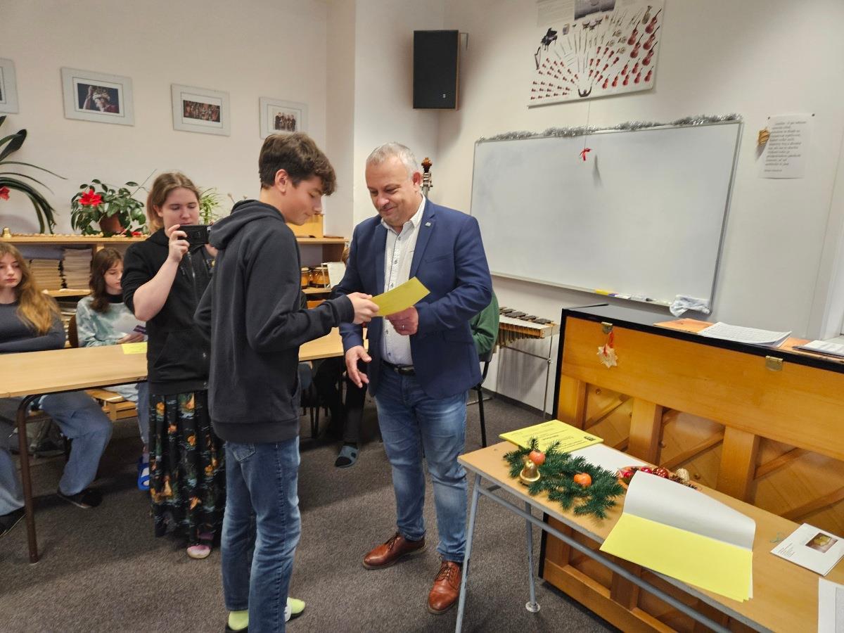 Ve středu 10. prosince 2025 proběhlo slavnostní předávání odměn studentkám a studentům nižšího gymnázia za jejich vynikající úspěchy v soutěžích a olympiádách během uplynulého školního roku.