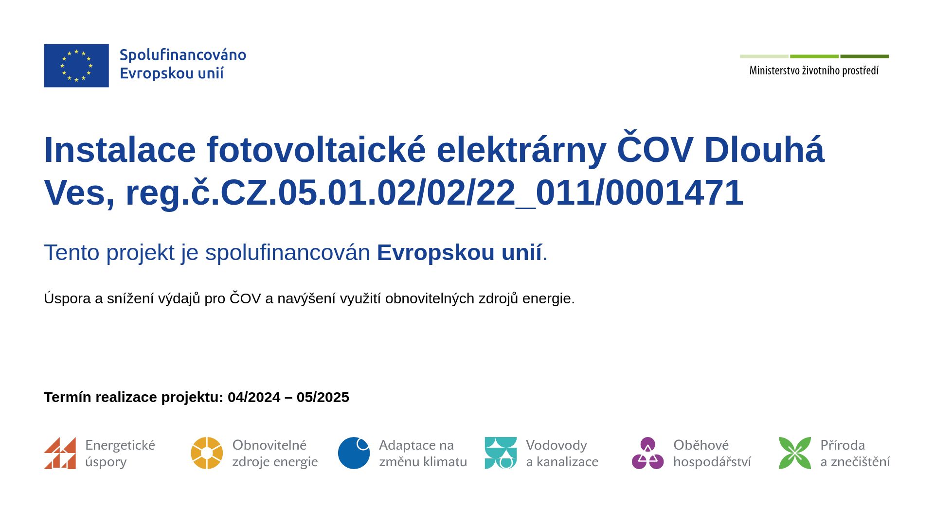 Obsah stránkyPublicita projektůDatumDokument03.03.2026Propojení jímacího zářezu a vodojemu v k.ú. Dlouhá Ves u Sušice11.06.2025Instalace fotovotlaické elektrárny ČOV Dlouhá Ves29.10.2024Projekt rekonstrukce a vybavení učeben ZŠ Dlouhá Ves23.10.2024Dechovkový festival v Dlouhé Vsi 202425.09.2024Rekonstrukce a vybavení učeben